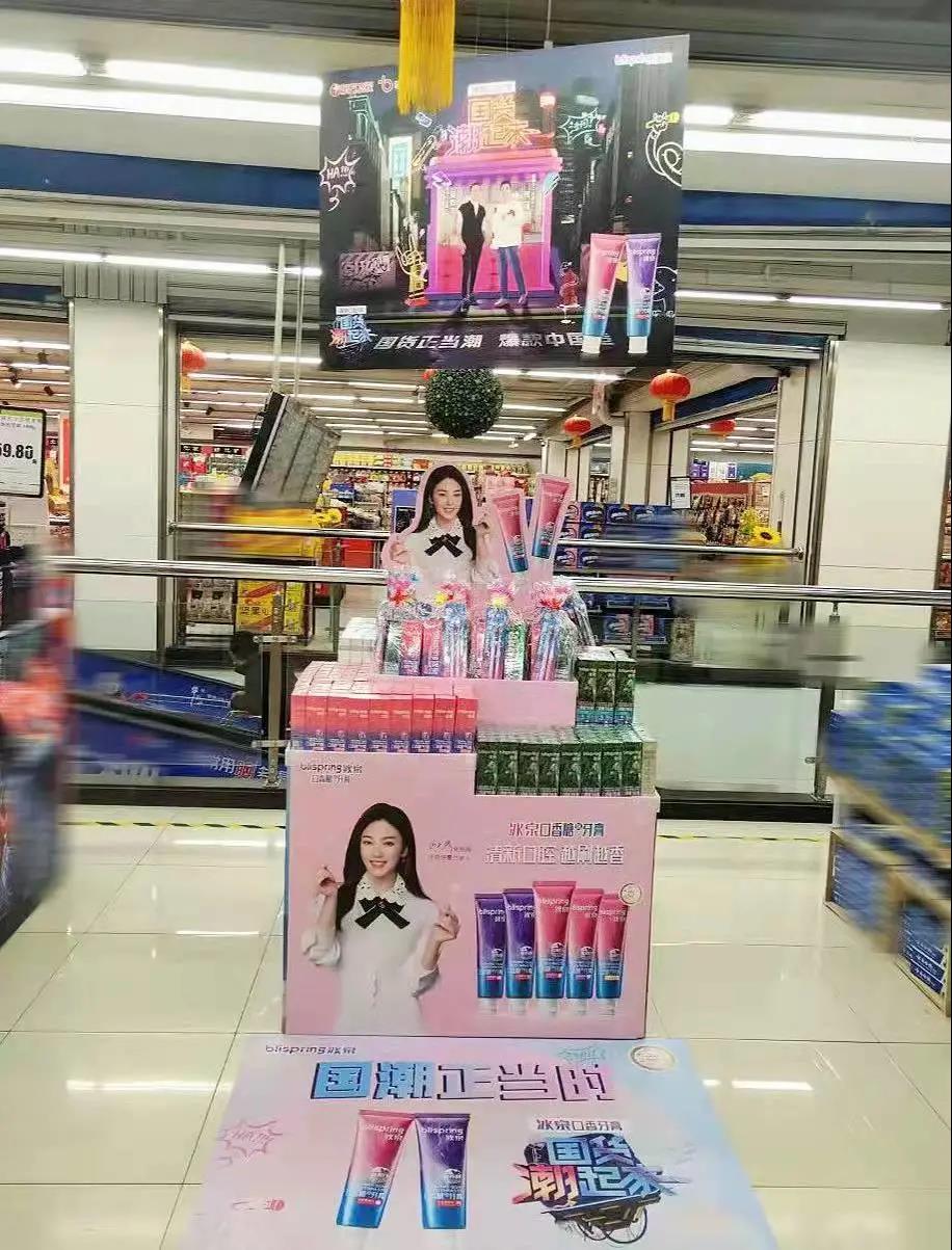 本次元旦大促,冰泉积极落地终端,全力围绕元旦节庆和国货潮起来相结合的营销主题,抓住岁末年初的最佳营销时机,和消费者互动,在各大卖场打造国潮形象堆头,形成线下国潮营销特色,借力打出了冰泉潮流口腔品牌的气势,最终实现销售的最新冲锋!