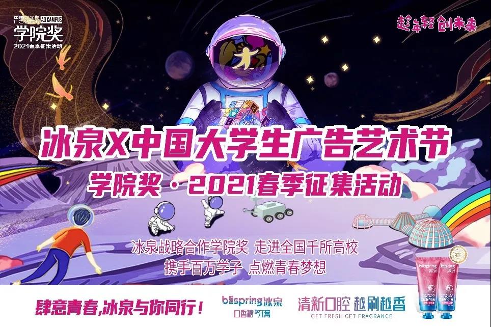 2021,以创意为名,冰泉首次牵手学院奖走进全国高校,以其高颜值包装与年轻、时尚、炫彩、灵动的品牌调性俘获众多年轻学子喜爱。据统计,本次冰泉品牌共收到了超过12000多组作品,涵盖了平面广告、产品包装、漫画故事、广告文案、短视频共5个命题类别。通过长达150天的品牌亲密接触,新一代年轻群体大开脑洞,用丰富多元的创作表现手法展现了他们心目中的冰泉口香糖牙膏,积极主动的与冰泉建立起了品牌沟通渠道,实现了情感共鸣。