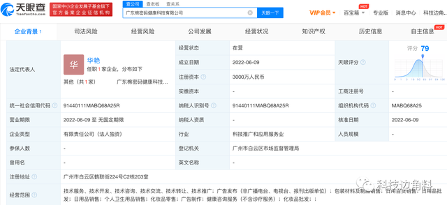 广东棉密码健康科技有限公司日前在广州成立,法定代表人为华艳,注册资本3000万元,由广州辛选控股有限公司全资持股,最终受益人为辛有志。天眼查App显示,该公司经营范围含日用百货销售;个人卫生用品销售;化妆品零售;健康咨询服务;化妆品批发等。