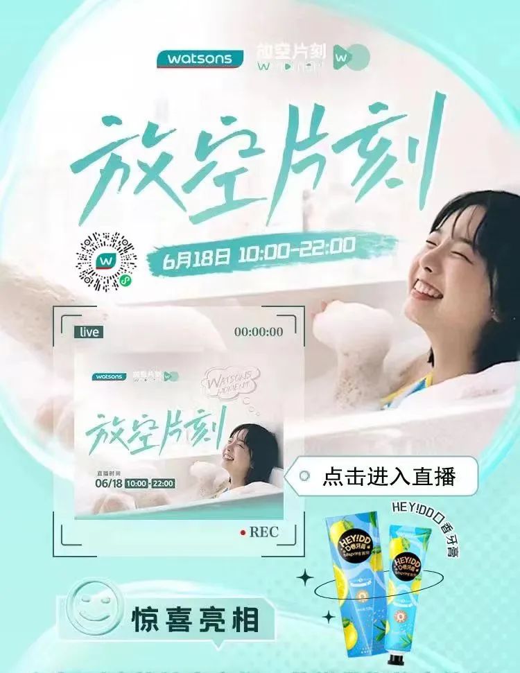 冰泉X屈臣氏618全天直播带领粉丝放空片刻