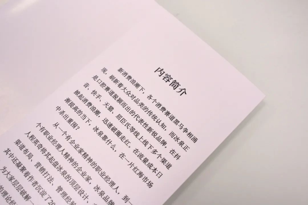 冰泉这些成功路径和创新打法也在冰泉创始人、CEO程英奇的首部著作《冰泉攻守道》中得到了完美呈现,程英奇程总结合过往20多年的品牌营销管理经验,将其起盘冰泉的顶层设计、产品思维、渠道布局、营销打法等娓娓道来,凝聚了冰泉团队开创事业、共同奋斗的所思、所想、所为。