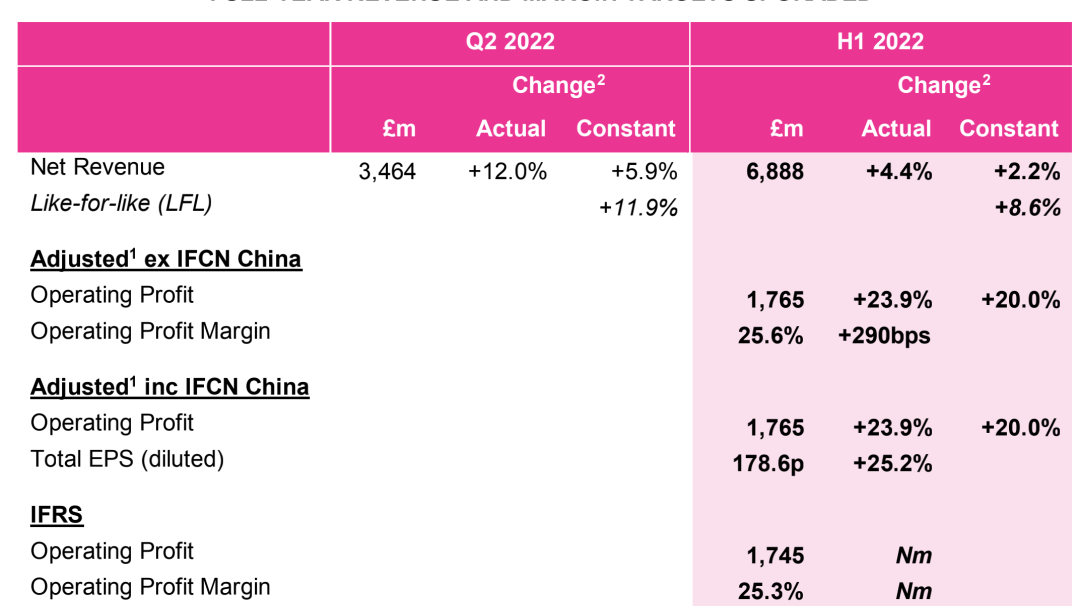 7月26日,欧洲消费品巨头联合利华公布了截至6月30日的2022上半财年关键财务数据,集团基础销售额(USG)增长8.1%,主要得益于上半年基础价格(UPG)上涨9.8%,而基础销量(UVG)下滑1.6%,按照GAAP计量方法的上半年销售收入为296亿欧元。美容个护营业额为64亿欧元,基础销售额增长8.0%,基础销量下滑2.3%。