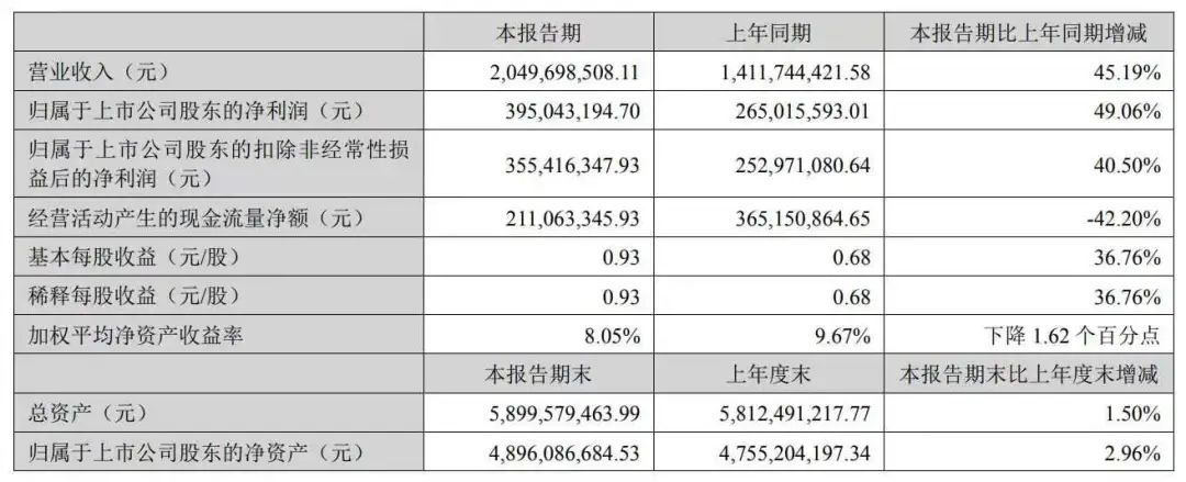 贝泰妮2022年上半年实现营业收入20.50亿元,同比增长45.19%;实现营业利润4.67亿元,同比增长47.06%;实现归属于上市公司股东的净利润3.95亿元,同比增长49.06%。