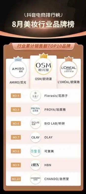 抖音电商发布8月销售额TOP5美妆品牌