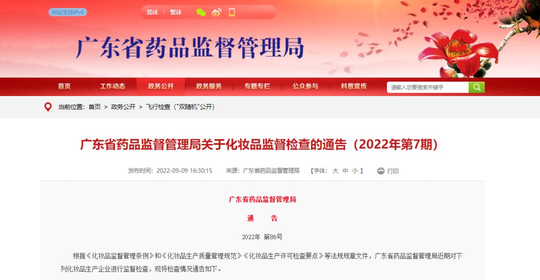 近日,广东药监局公布了2022年第6期和第7期化妆品监督检查公告,共有59家企业接受检查,52家企业被责令限期改正并依法调查处理,整体合格率仅为11.86%。