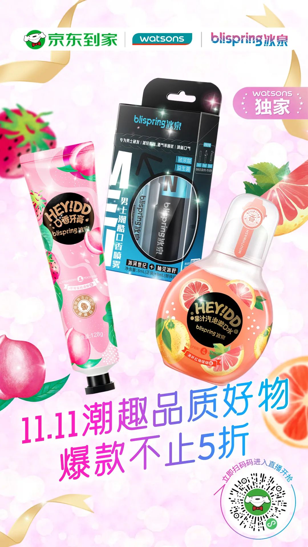香购双11!冰泉×屈臣氏口香爆品上线京东到家直播间
